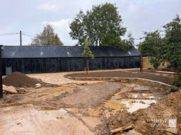 The site was previously a dilapidated stable yard, which we cleared by demolishing the existing structure and breaking up the old concrete. Rather than discarding the concrete, we decided to repurpose it in a creative way. The broken pieces were carefully reassembled to create a large-scale crazy paving design, laid on a sharp sand screed and pointed with sharp sand to give it a weathered, rustic appearance, just as the client requested.